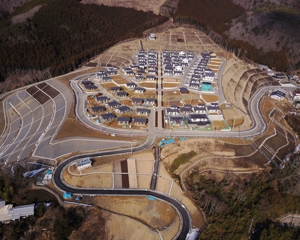 大津波が故郷を呑み込んだ2011年以降、この問いが私の中に浮かび上がりました。私は写真館の三代目として、女川の移り変わる風景を上空から眺め、過去の記憶と重ね合わせてきました。1933年の昭和三陸津波、1960年のチリ津波、そして2011年の東日本大震災――世代を超えて津波に立ち向かい、復興を遂げてきた住民たちの記憶がそこにあります。再建されつつある家々、かつての女川湾、仮設住宅の前で撮られた家族写真、祖父が撮影した婚礼写真――これらはすべて私の中で故郷を形作る断片です。